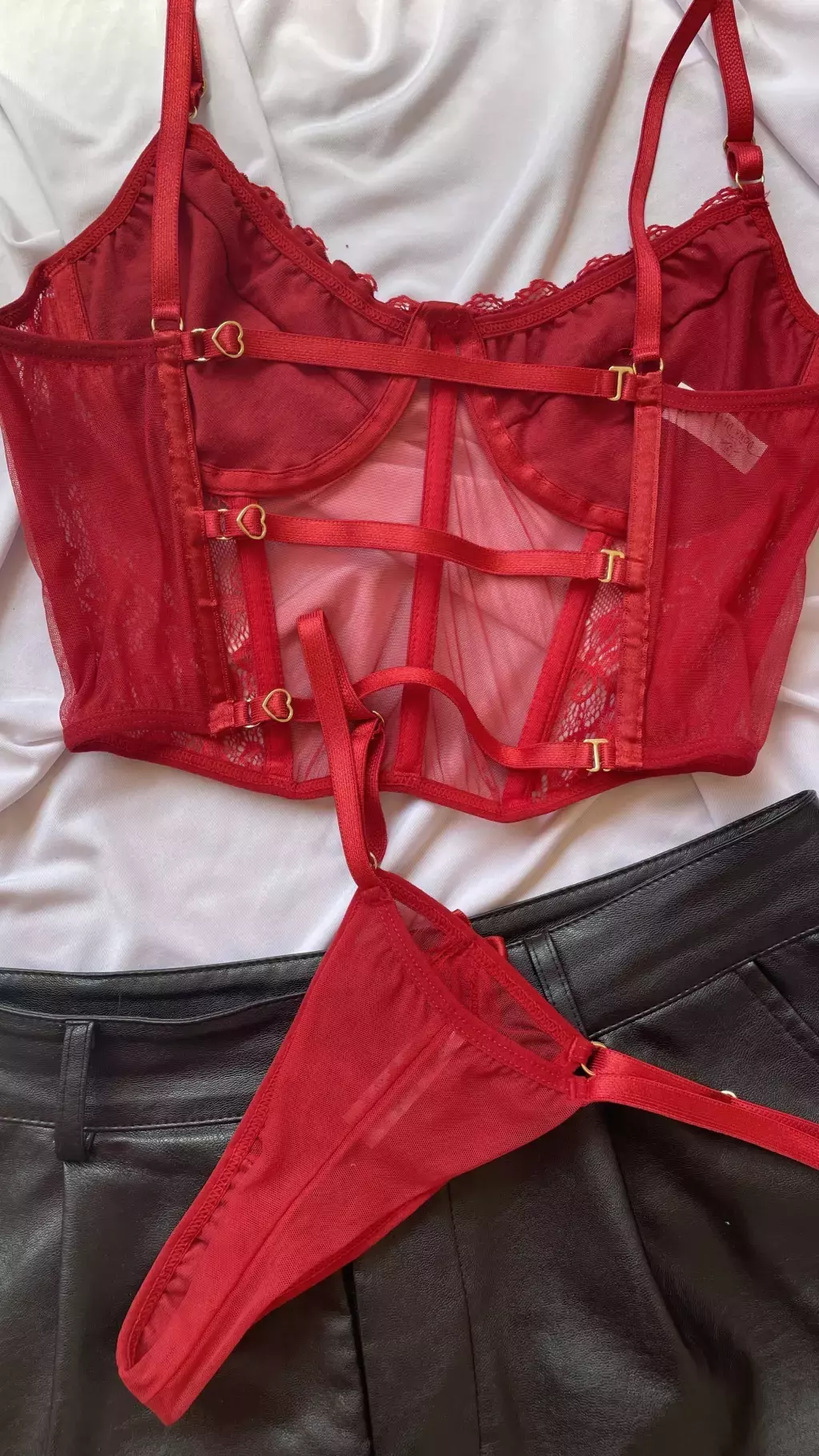 💖 Características que Encantam: - Corset com aro de sustentação no busto, garantindo um suporte ideal. - Barbatanas frontal e laterais que moldam e definem . - Calcinha toda em tule com detalhes em renda frontal, um toque de sofisticação. - Forro 100% algodão para o máximo conforto e suavidade na pele. - Regulador de coração para um ajuste perfeito.